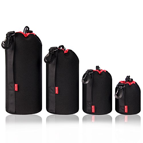 POLAM-FOTO 4-pack tjocka linspåsar set för att skydda DSLR-kameralins, linsfodral neopren med mjuk tjock svart plysch inuti för Canon, Nikon, Tamron, Sigma, Pentax, etc.