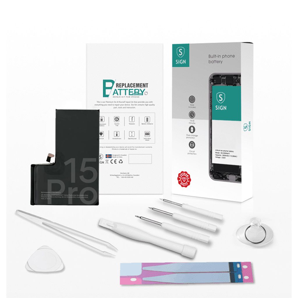 SiGN Komplett Kit för Batteribyte - iPhone 15 Pro