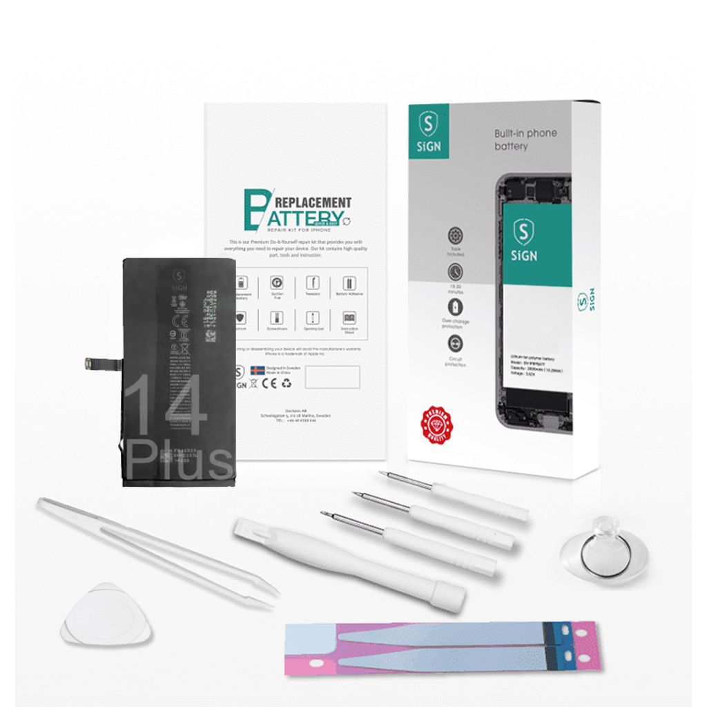 SiGN Komplett Kit för Batteribyte - iPhone 14 plus