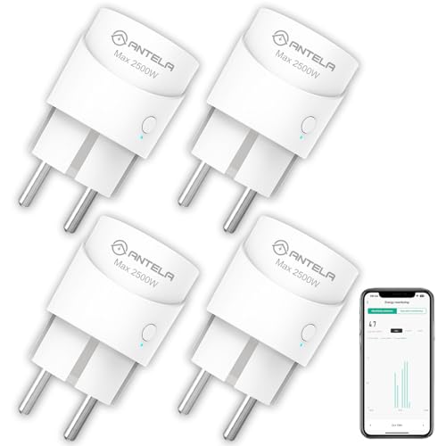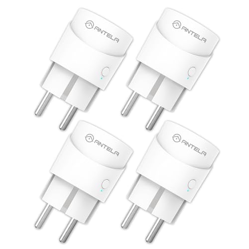 ANTELA Smart Min Plug 10A 2500W med Energiövervakning, Smarta Kontakt Kompatibel med Alexa/Google Home, Fjärrstyrning,Röststyrning, Schema,WIFI 2.4GHz,4PC