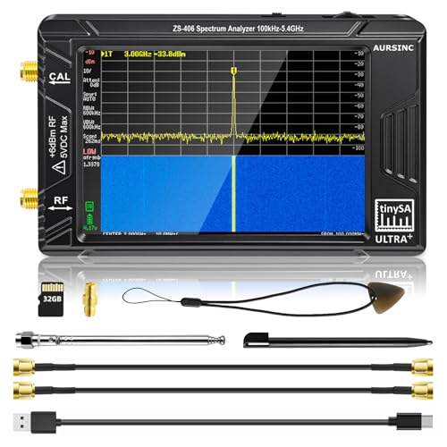 AURSINC Tinysa Ultra+ ZS406 Spektrumanalysator, 2025 uppdaterad 4,0 tum HW V0,4,6 tum 100 kHz-5,4 GHz med 32Gb kort, 100 kHz 2-i-1 signalgenerator vid 900 MHz MF/HF/VHF/UHF ingång.
