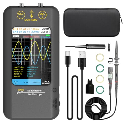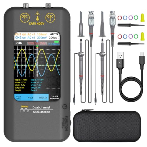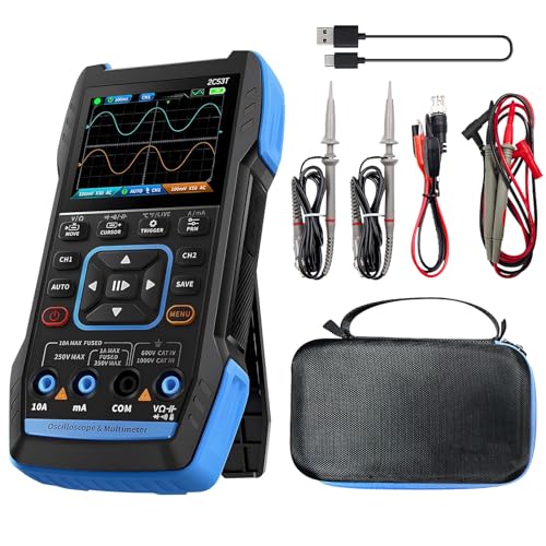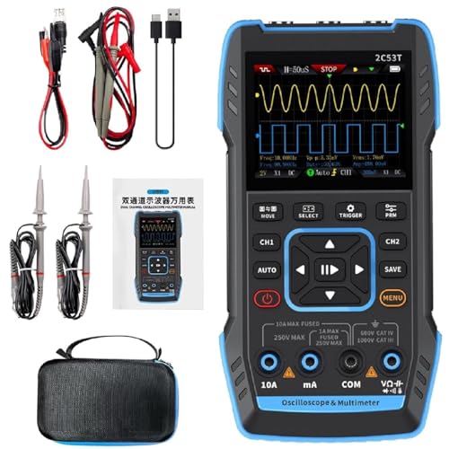 2C53T 3-i-1 bärbart oscilloskop multimeter förbättrad med 2 kanaler, 50 MHz bandbredd och 250 MS/s samplingsfrekvens, TRMS signalgenerator 19999 Counts, 13 vågformer för testning av