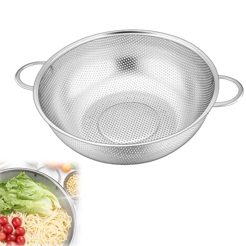 Sil, kökssil i rostfritt stål med handtag, pastasil, mikroperforerad droppsil, metall kökssir, silkorg över för nudlar droppar, grönsaker och frukt, ris, diskmaskinssäker – 19 cm 1 st