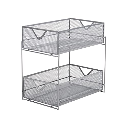 Mind Reader CABASK2T-SIL tillbehörsorganisatör, förvaringsförvaring, smink, metall, silver