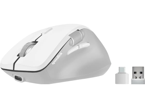 Speedlink Libera Silent Mouse – Bluetooth-mus, tyst klick, uppladdningsbart batteri, tumrullhjul, 1 Bluetooth-profil, 1x USB-A & 1x USB-C 2,4 GHz-profil, 3200 DPI, ergonomisk, vit