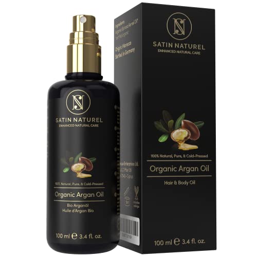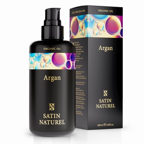 Arganolja för hår 100-100% ren, organisk, vegan, kallpressad hårolja för torrt skadat hår - vitaminrik - anti -aging, mjuk hud, friskt hår och naglar - massageolja - skäggolja - Satin naturel