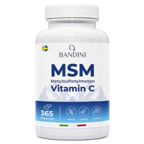 Bandini® MSM 365 tabletter med Vitamin C - Methylsulfonylmethan 2000mg kosttillskott för hår, hud, leder och naglar - svavelbaserad muskelinflammation - Vegan - Alternativ till MSM-pulver & kapslar