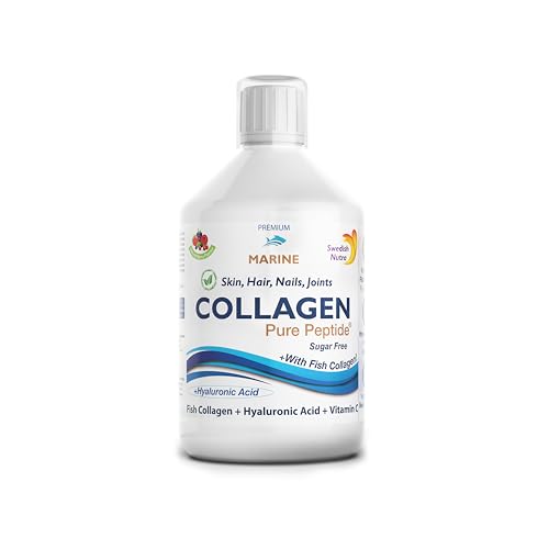 Swedish Nutra – Hydrolyserat marinkollagen-vätsketillskott – förpackning med 500 ml, 20 dagars tillförsel | Ren peptid och vitaminer för friskt hår, hud, naglar och leder I 100 % naturlig bärsmak