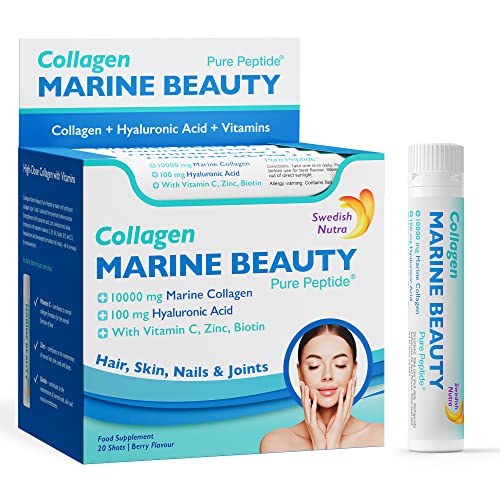 Swedish Nutra - Marine Beauty Collagen-shots (20 bilder) | Kollagen typ 1 & 3 för hår, hud och naglar | 100 % läcker naturlig smak | Hög absorption