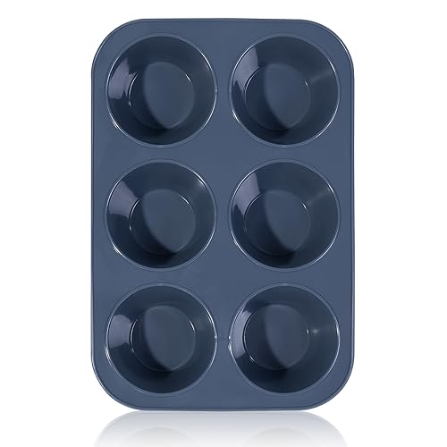SUPER KITCHEN Stor Muffinsform med 6 håls, Non-Stick Muffinsbricka, Silikon Muffinsformar, Bakplåt Bakform för Muffins, Koppkaka, Bagels, Tårta, Pudding, Chokladkakor (27,8 x 19 x 5 cm, Grå)