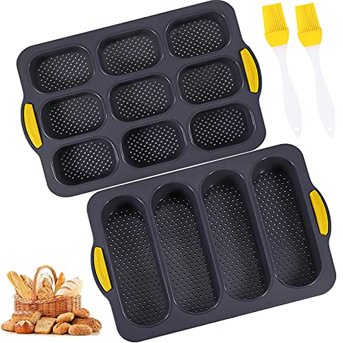 Frasheng silikonform brödbakform, 2 st baguette-bakform, minibaguette-bakplåt, 4 vågslitsar silikon, baguette-bakplåt, 9 enheter bröd, bakform, med oljepensel, perfekt för baguette