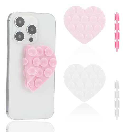 Nogeqi 2 stycken rosa mobiltelefonfodral med hjärtaformad sugkopp, dubbelsidig, silikon mobiltelefon lim baksida sugkopp, söt och halkfri för alla telefonmodeller selfies (vit)