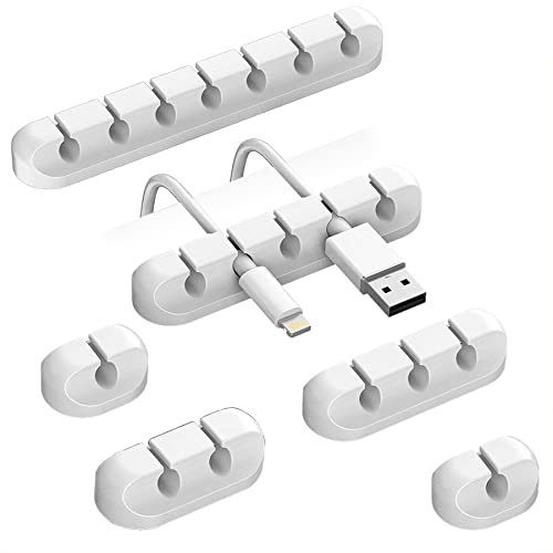 Rusoz Självhäftande kabelklämmor, 6 st vit kabelhållare silikon kabelhantering för kabelorganisatör med 3M lim till bilar, kontor och hem
