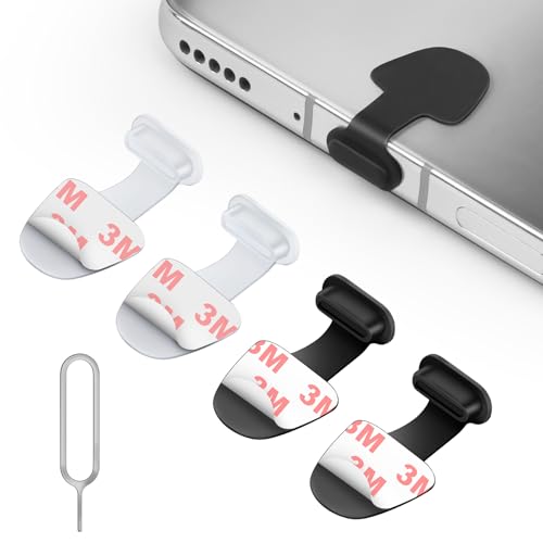 AXFEE Typ C-port dammproppar, dammskyddskåpor, silikon USB C-dammplugg med avtagbart lim och kortborttagningsstift, USB-C laddningsport skydd för laptop/iPad/i-Phone 16 tillbehör (4 st, 2 färger)