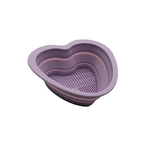 Silikon hjärtform vikbar sminkborste kosmetika bomull rengöringsplatta makeup verktyg rengöringstablett skönhetsverktyg svamp puff makeup pensel eyeliner (ljus lila)