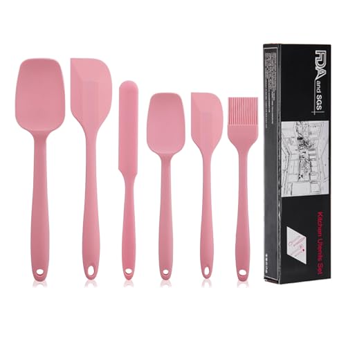 Set med 6 silikonspatlar, spatel i silikon, matlagning, köksredskap, bestående av spatel, skrapa, pensel och sked, värmebeständig upp till 230 °C, lämplig för matlagning och bakning