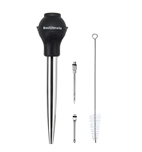 BestUtensils rostfritt stål kalkon baster kommersiell kvalitet silikon glödlampa inklusive 2 marinade injektornålar och borste för enkel rengöring