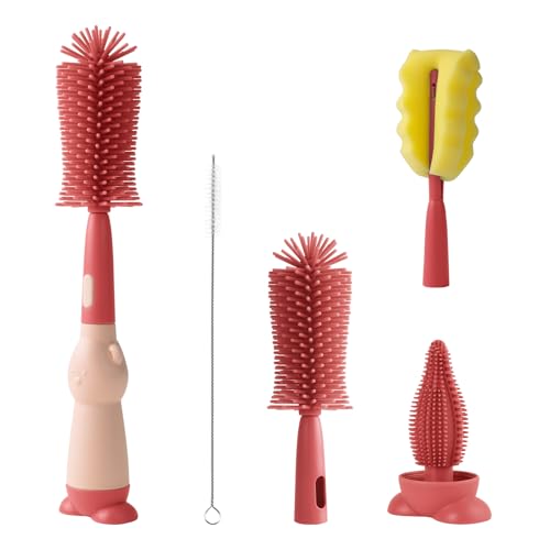 Vicloon Flaskborste, 4 st silikon rengöring av flaskor och napp, silikonborste med hängande hål, rengöring av vattenflaskor termosglas, rosa