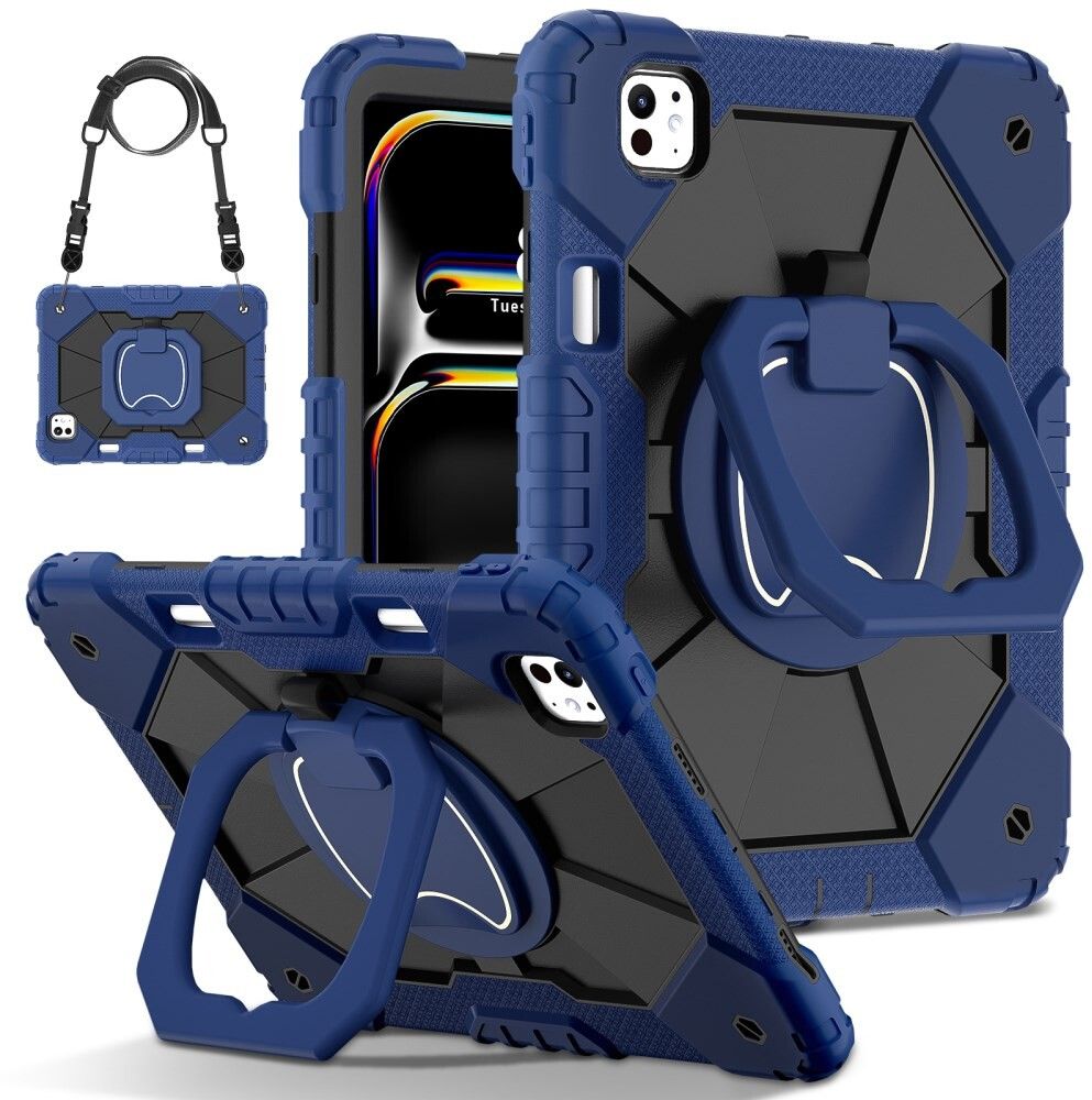 Trolsk Skal med Rem - Blå (iPad Pro 11 (2024-2025)) - Tåligt skydd, fodral med handrem, axelrem & avtagbar halsrem, stativfunktion, silikon/hårdplast