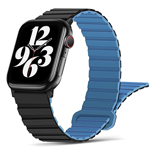 Tasikar Kompatibel med Apple Watch Band 42 mm (serie 10) 41 mm 40 mm 38 mm Silikonband med magnetisk slinga [dubbelsidigt bärbart] Designad för iWatch serie 10 9 8 7 SE 6 5 4 3 2 1, Zwart Blauw