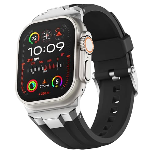 Robust sportarmband för män kompatibelt med Apple Watch Ultra 2/Ultra, armband 49, 44, 45, 42 mm, rostfritt stålband, hållbart silikonband för iWatch armbandsserie Ultra 9, 8, 7, 6, 5, 4, 3, SE