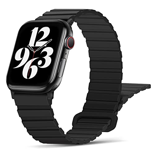 Tasikar Kompatibel med Apple Watch Band 42 mm (serie 10) 41 mm 40 mm 38 mm Silikonband med magnetisk slinga [dubbelsidigt bärbart] Designad för iWatch serie 10 9 8 7 SE 6 5 4 3 2 1, Zwart