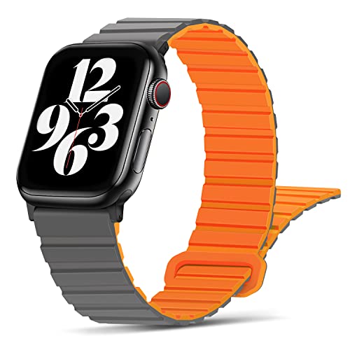 Tasikar Kompatibel med Apple Watch Band 42 mm (serie 10) 41 mm 40 mm 38 mm Silikonband med magnetisk slinga [dubbelsidigt bärbart] Designad för iWatch serie 10 9 8 7 SE 6 5 4 3 2 1, Grijs Oranje