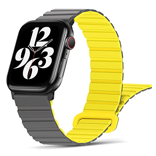 Tasikar Kompatibel med Apple Watch Band 42 mm (serie 10) 41 mm 40 mm 38 mm Silikonband med magnetisk slinga [dubbelsidigt bärbart] Designad för iWatch serie 10 9 8 7 SE 6 5 4 3 2 1, Grijs Geel