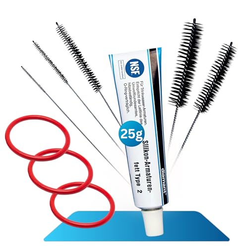 fancility® Set för bryggenhet DeLonghi & AEG 25 g silikonfett för helautomatiska kaffemaskiner 3 tätningar, inklusive ECAM ESAM ETAM brygggrupp 5 rengöringsborstar presskolvar, tätningsringar,