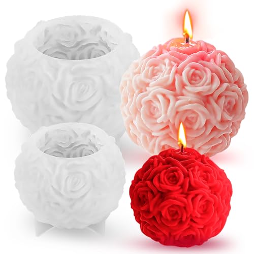 2 stycken rosenkula ljusform, silikonformar gjutformar, ljus gör-det-själv tillverkningsset, 3D-rosor blommor ljusformer för gjutning, ljusformer silikon för gör-det-själv doftljus, ornament alla