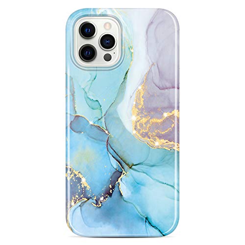 JIAXIUFEN, Skal för iPhone 12 12 Pro 2020, 6,1 tum, smal design, stötsäker mjuk TPU-silikongummi, marmorerad mintgrön, lila med glittrande guldglitter