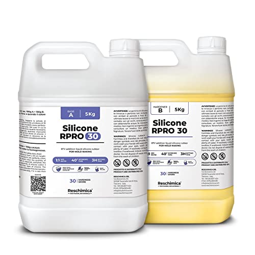 Silikongummi 1:1 R PRO 30, icke giftig, lätt att använda, rivhållfast, 30 shore, kompatibel med epoxiharts, gips, vax (10 kg)