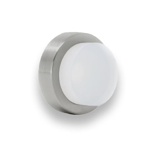 EVI Herrajes | Dörrstopp | 2,4 cm x 1,4 cm | självhäftande eller skruvinstallation | matt finish (rostfritt stål) | vitt naturligt silikongummi | mod. I-205/24B