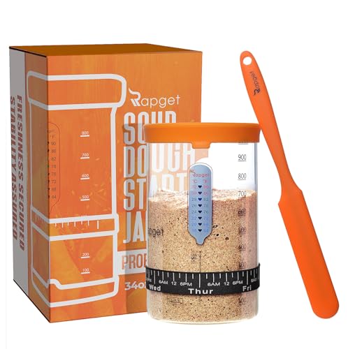 Sourdough Starter Kit, 34 oz Sourdough Starter Jar Glass med stor kapacitet med datummärkt matningsband, termometer, Sourdough Jar Scraper, Sourdough Container Sydd tygöverdrag och silikonöverdrag