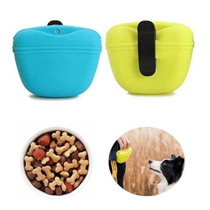 2 st hundgodispåsar för träning, silikonpåse med magnetisk stängning, BPA-fri, (blå och gul)