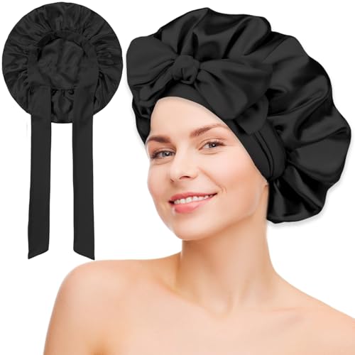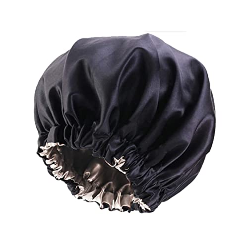 WLLHYF Sidenmössa för män, satinhuva, elastiskt band, sovmössa, siden, svart, mjuk, justerbar hårmössa, hårlinda stora huvor för sovande kvinnor