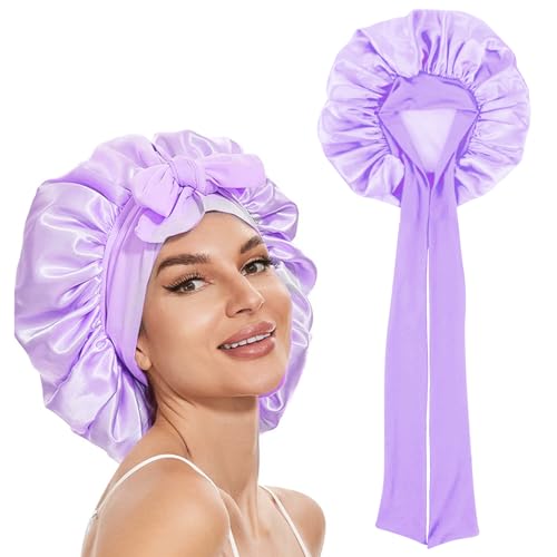Coubeau Lång Satin Bonnet – Sidenhuva för Sömn, Justerbar Huvudbonad, Mjuk Huvudmössa, Silke Med Elastiskt Band för Kvinnor och Flickor
