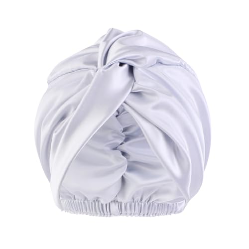 TAOZHUGONG Sidenhuva för sömn, mullbärssilke, kvinnor, nattmössa, sovmössa, siden, mjuk silke, bonnet sidenhuva, bra för håret, sovmössa för natten (silverfärgad)