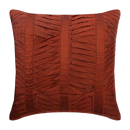The HomeCentric Dekorativ Rost 40 x 40 cm Konstsilke Kuddfodral för soffa, Pintucks, texturerat Fyrkantiga kuddfodral Silke, Randig Modern - Rusty