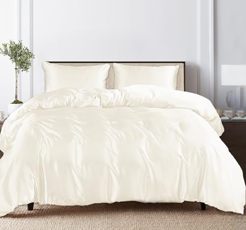 Herside Vitt påslakanset i satin, volang, sängkläder, massivt silke, som satin, volang, design, silkeslent satinsängkläder, super king, 1, vitt påslakan 2 örngott (vit, super king)