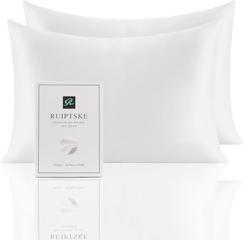 RUIPTSKE Örngott i naturligt siden, allergivänligt, 22 mm, 100 % silke, 600 trådar, med dold dragkedja (50 x 75 cm-2 st, vit)