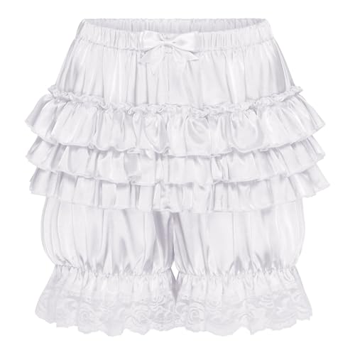 Satini Sissy Volang Viktoriansk Lolita Pantalong Shorts Silke Siden Pumpapuffbyxor (Vit, XL)