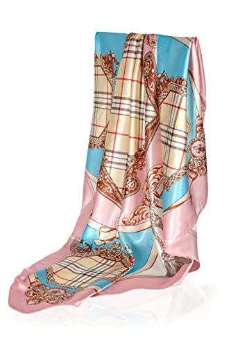 GLORIS Sidenscarf elegant 90 x 90 cm hår sidenscarf siden satinduk halsduk silke dam bandana tyg huvuddukar näsduk ansats halsduk bandana, Pink Cell