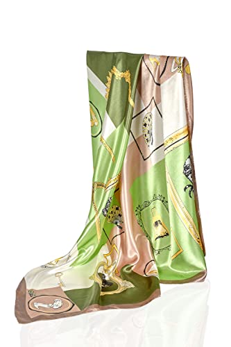 GLORIS Sidenscarf Elegant 90 x 90 cm för Dam - Siden Satinduk Halsduk Silke Bandana Tyg Huvuddukar Näsduk Ansats, Grön Abstrakt