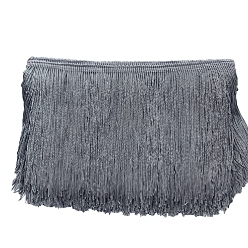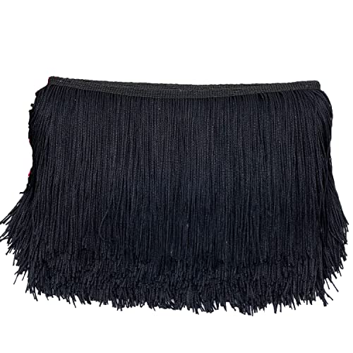 Duories 10 cm x 5 m franskant fransband dekorativa dansfransar klippfransar silke tofs fransar band för sömnad, gör-det-själv-hantverk, kläder underkläder kostymer gardiner dekoration, svart