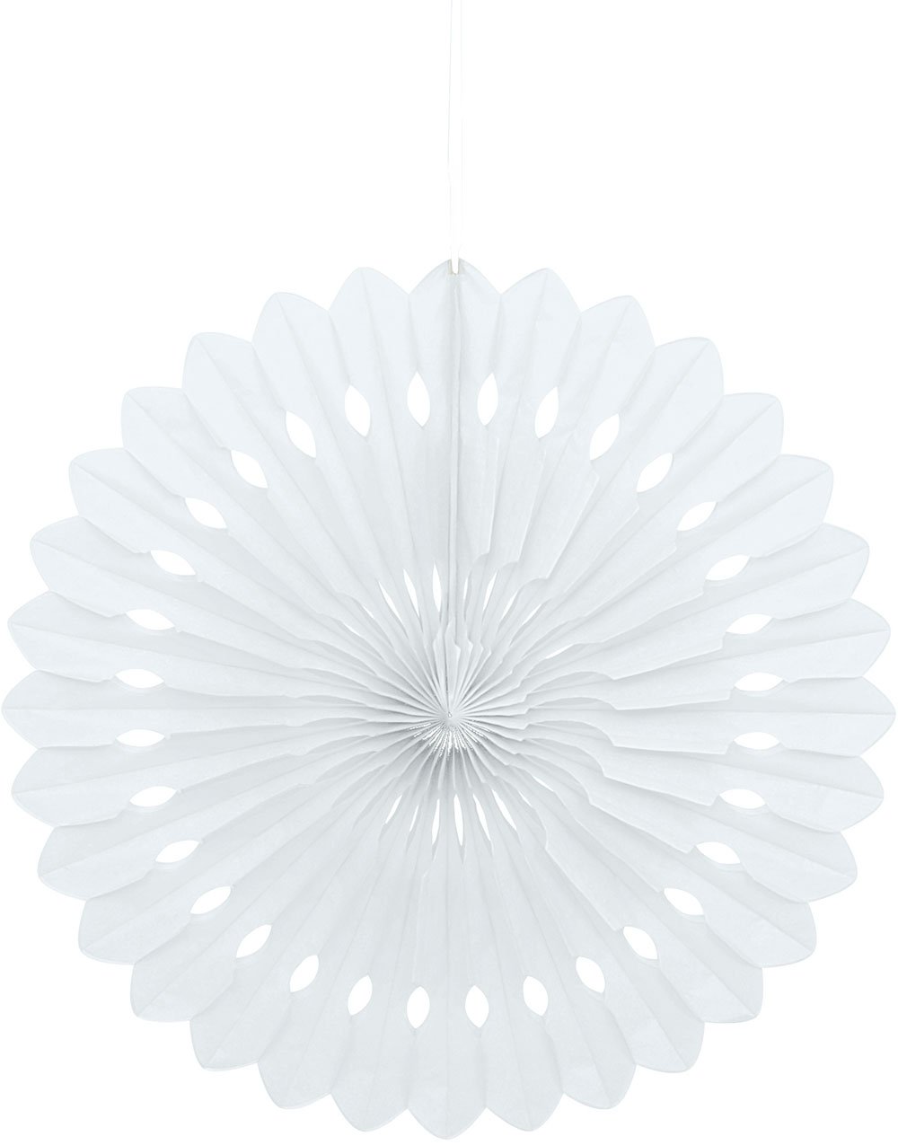 1 st Vit Dekorationssolfjäder i Silkespapper 40 cm