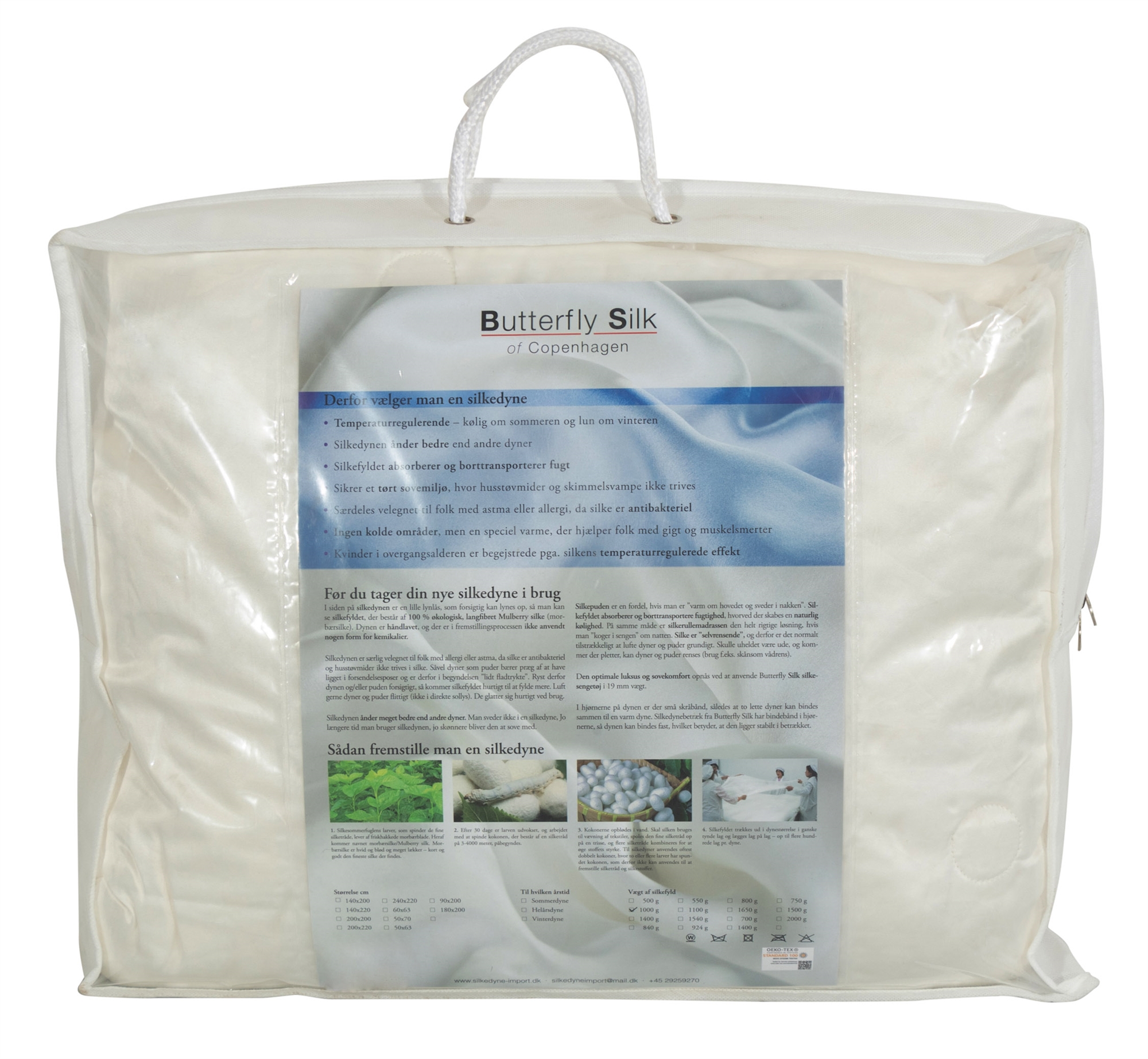 Silkestäcke 140x200 cm - Helårstäcke - Butterfly Silk - Hotelltäcke med yttertyg i 100% mullbärssilke