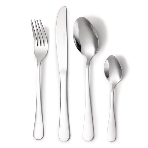 KitchenBoss Cutlery Set for 4 People: 20 Pieces Stainless Steel Knife and Fork Sets, Mirror Polished Cutlery Set, Flatware Set, Dishwasher Safe, Silver