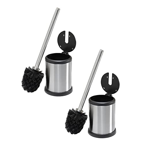 Bath Bliss Stainless Steel 2 Pack Self Closing Lid Toilet Brush and Holder, Finger Print Proof, Compact, Small Space, 6980-2PK, Silver