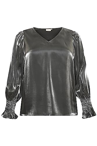 Kaffe Curve Plusstorlek dam blus V-ringad avslappnad passform långärmad metallisk, Silver, 48/Stor
